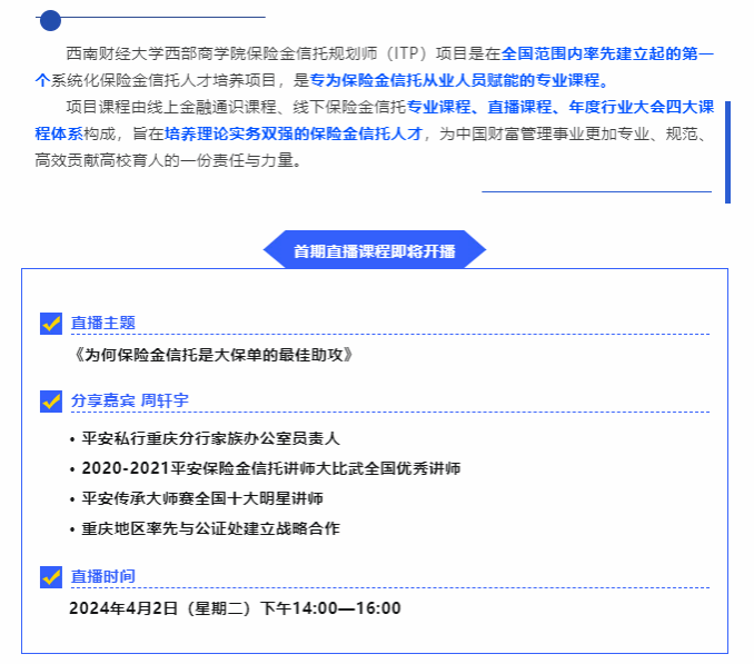 直播预告!保险金信托规划师(ITP)项目直播课程来啦